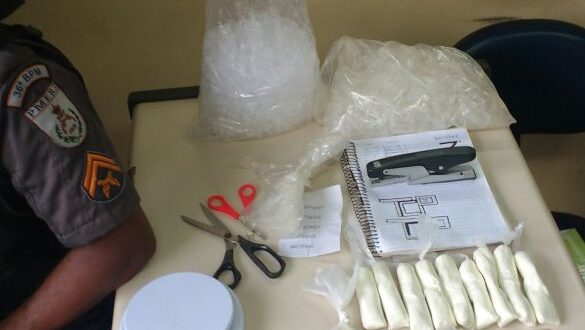 Dois suspeitos, entre os quais um menor, foram detidos na tarde desta quarta-feira (22), após terem sido flagrados com farto material do tráfico de drogas no interior de uma casa abandonada, na Vila José de Carvalho, Miracema. Após receberem denúncia, militares do 36º BPM seguiram para o local, onde após buscas pelo imóvel, encontraram cerca de 50 sacolas plásticas e 900 pinos vazios, usados na endolação, balança de precisão, tesouras, grampeador, agenda telefônica, cadernos com anotações, sacolés e pinos, já prontos para a comercialização com cocaína, além de pasta base, totalizando cerca de 300 gramas da substância.