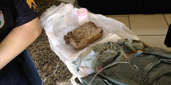 Policiais militares do 29º BPM prenderam no início da tarde deste domingo (05), Isaías da Silva Moreira, de 37 anos, sob a acusação de tráfico de drogas. Os agentes após receberem denúncia, passaram a monitorar o suspeito, visto manipulando a caixa d’agua vazia na laje de uma residência desocupada, na Rua Joaquim Martins da Silva, no bairro Jardim Surubi, Itaperuna. Abordado pelos agentes em um trailer de bebidas, o envolvido agora acompanhado dos PMs, voltou ao endereço, onde localizou-se no interior do reservatório de água, um tablete com aproximadamente meio quilo de maconha, além de material para endolação (foto). Levado até a 143ª Delegacia, ele acabou autuado em flagrante e transferido para a Casa de Custódia da cidade.