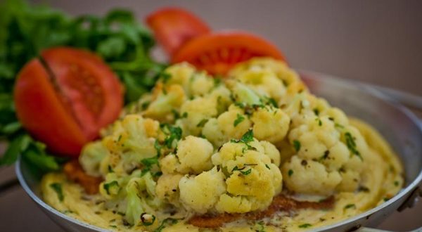 3. Depois de refogado coloque a água e a couve-flor (já cortada e lavada) tampe a panela para cozer a couve