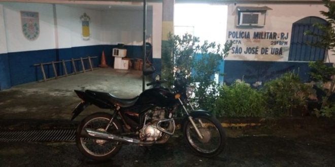 Uma motocicleta, que havia sido roubada durante assalto na noite deste domingo (19), em São José de Ubá, foi recuperada. A Honda CG 125 Fan, de cor preta, placa LTN 4017, foi encontrada abandona no meio do matagal, às margens da estrada vicinal que liga o município ao distrito de Paraíso do Tobias, Miracema. O veículo, usado na fuga dos dois criminosos ainda não identificados, pertence a M.V.C.V., de 50 anos, que participava do encontro de carros de som e junto com outras dezenas de pessoas, viveu momentos de terror sob a mira de arma. Além da moto, os bandidos levaram cerca de R$ 15 mil em dinheiros, celulares de joias.