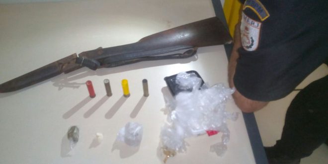 A PM cumpriu no final da tarde desta quinta-feira (23), mandado e busca e apreensão no interior de uma residência, na Rua Luperci Peres Duarte, em Cardoso Moreira. Após buscas no imóvel, agentes da 4ª Companhia do 29º BPM, encontraram cerca de 30 gramas de maconha, um papelote de cocaína, material para endolação, além de uma espingarda calibre 32, com duas munições intactas e outros dois estojos deflagrados. Diante dos fatos, o responsável pelo local, Adeir de Aquino Ribeiro, de 40 anos, seguiu para a 148ª Delegacia de Italva, sendo autuado em flagrante e transferido na manhã desta sexta-feira (24) para a Casa de Custódia de Itaperuna.