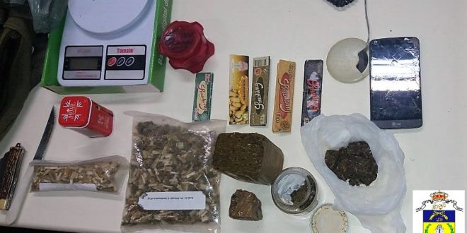 Militares lotados na 3ª Companhia do 29º BPM prenderam um suspeito de tráfico de drogas, no final da noite deste domingo (26), na área central de Porciúncula. Os agentes realizavam patrulhamento de rotina, quando na Rua Schwartz Vieira, abordaram Caio José Monteiro de Moraes, de 20 anos, encontrando no interior da mochila que ele levava às costas, cerca de 300 gramas de maconha, enrolados em fita adesiva e camuflados dentro de um pote de papinha para bebês, além dois trituradores de erva, balança de precisão, papéis de seda, duas facas/canivete, além de R$ 742 em dinheiro (foto). Conduzido ao plantão de área da 148ª Delegacia de Italva, acabou autuado e transferido na manhã desta segunda-feira (27) para a Casa de Custódia de Itaperuna.