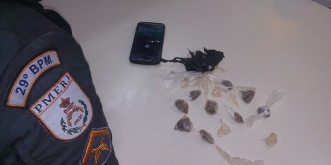 Os traficantes bateram em fuga, se embrenhando em uma mata, mas um deles, Henrique Cordeiro Pinto, de 19 anos, acabou alcançado e detido. No imóvel, foram apreendidos nove buchas de maconha e um papelote de cocaína (foto). Instantes depois, o segundo envolvido, o adolescente M.M.S.P., de 17, acabou localizado em uma rua próxima, levado até a 143ª Delegacia, autuado por crime análogo ao tráfico de drogas e liberado, assim com a mulher, A.P.F., de 20, que responderá por favorecimento real. Já o outro maior, seguiu para a Casa de Custódia de Itaperuna.