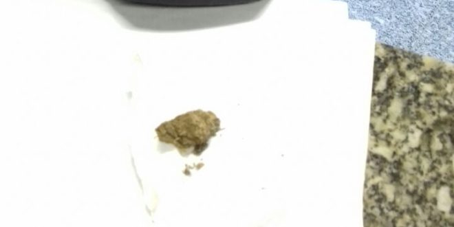 Policiais militares da 3ª Companhia do 29º BPM detiveram no final da tarde desta quarta-feira (12), J.B.T.S., de 30 anos, com quem encontraram pequena quantidade de entorpecente. Os agentes realizavam patrulhamento, quando abordaram o suspeito, por volta das 16h, na Rua Deputado Carlos Pinto Filho, bairro Nossa Senhora da Penha, Porciúncula, encontrando em seu bolso, o tablete com pouco mais de um grama de maconha (foto), que ele revelou ser para consumo próprio. Conduzido ao plantão da 139ª Delegacia, prestou depoimento e responderá em liberdade.