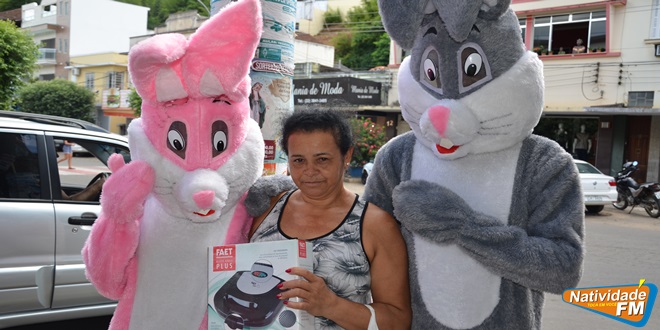 Na manhã deste sábado (15), a Rádio Natividade realizou seu tradicional sorteio de páscoa, onde foram distribuídos 104 brindes entre seus ouvintes, que escreveram e enviaram milhares de cartas para a emissora. Foram dezenas de caixas de bombons, ovos de pascoa, kits de doces, um faqueiro, liquidificador, espremedor de frutas, além de uma sanduicheira. Ao final do sorteio os coelhinhos da páscoa tiraram fotos com crianças e distribuiriam chocolates na portaria da emissora.