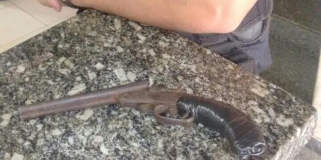 Policiais militares do 36º BPM apreenderam uma garrucha calibre 22 sem munição, na tarde desta terça-feira (18), em Santo Antônio de Pádua. Os militares realizavam patrulhamento, quando receberam denúncia de elemento armado, próximo ao terminal rodoviário da cidade. Ao perceber que seria abordado, o menor atirou o artefato às margens do Rio Bomba, onde ele acabou recolhido pelos agentes que o apresentaram juntamente com o infrator ao plantão da 136ª Delegacia, que autuou o rapaz, que após depoimento acabou liberado.