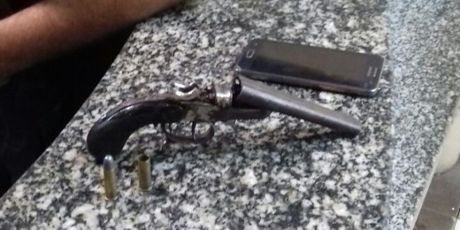 No início da madrugada desta segunda-feira (24), um jovem de 19 anos, que não teve a identidade revelada, foi preso por posse ilegal de arma de fogo, no bairro Pimentel Marques, Bom Jesus do Itabapoana. Os PMs passavam pela Rua José Eid, quando na altura do número 43, o suspeito ao perceber a presença dos agentes, tentou esconder a garrucha calibre 38 de marca e numeração desconhecidos (foto), junto ao medidor de energia elétrica. O artefato foi localizado e o envolvido conduzido até a 44ª Delegacia e autuado em flagrante, permanecendo à disposição das autoridades e posterior transferência para a Casa de Custódia de Itaperuna.