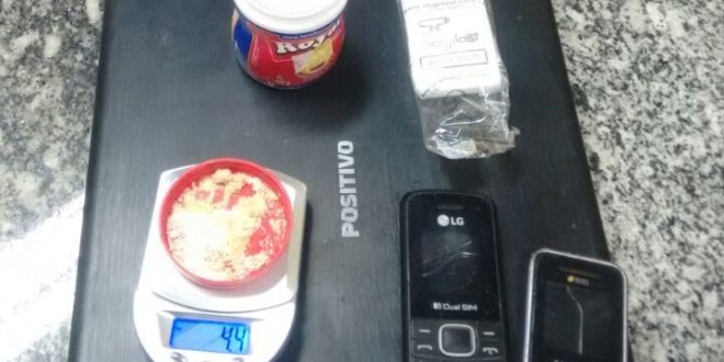 Um homem foi preso durante cumprimento de mandado de busca e apreensão executado na tarde desta terça-feira (25), no bairro Santo Antônio (Grenville), em Porciúncula. Agentes do Patrulhamento Tático Móvel (PATAMO -3ª Cia), de posse de denúncia anônima, conseguiram que documento fosse expedido pela comarca da cidade e seguiram para a Rua Salomão Guimarães, onde localizaram pequena quantidade de cocaína (seis gramas), balança de precisão, um notebook, além de dois celulares (fotos).