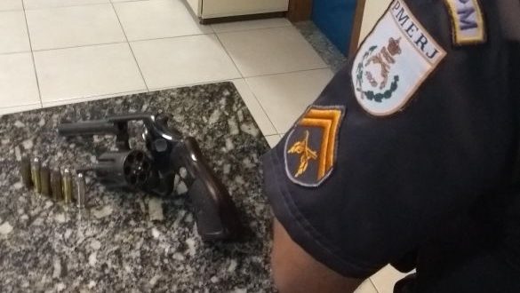 Um rapaz, que supostamente seria integrante de uma facção criminosa que atua em Santo Antônio de Pádua, foi preso na madrugada deste domingo (14), no centro daquela cidade. Anderson Ferregi Thomaz da Silva, de 21 anos, foi flagrado pelos agentes com um revólver calibre 38, com a numeração raspada e com seis munições intactas (foto), na Praça Monsenhor Diniz, local onde era realizada uma festa.