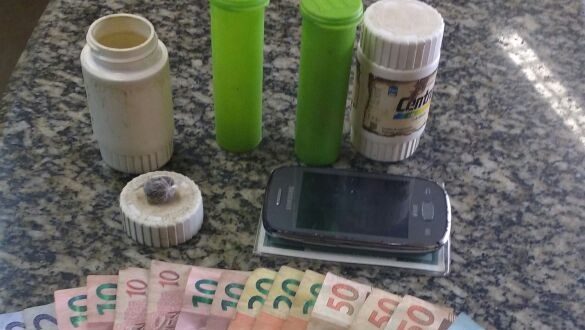 Lucas de Paula Picanço Cruz, de 24 anos, foi preso no final da manhã desta quinta-feira (18), sob a acusação de tráfico de drogas, no bairro Carulas, Itaperuna. Abordado na Rua José Joaquim Santana, ele permitiu buscas no interior de sua residência, onde os agentes apreenderam potes com pequena quantidade de maconha, telefone celular e R$ 376 em dinheiro (foto). Levado até a 143ª Delegacia acabou autuado em flagrante e transferido à Casa de Custódia da cidade.