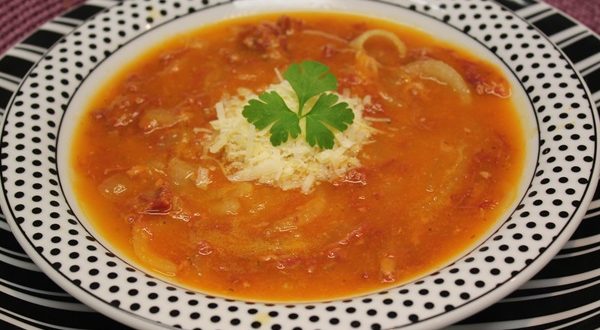 - Uma dica maravilhosa:é colocar o queijo minas ralado no prato, o caldo por cima do queijo e por último a cebolinha verde