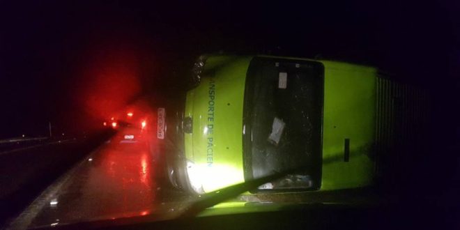 Duas pessoas ficaram feridas na noite desta quinta-feira (17), após acidente envolvendo uma van de transporte de pacientes da Prefeitura de Miracema. O veículo retornava do Rio de Janeiro, quando na altura do quilômetro 26 da BR 116, em Teresópolis, o motorista perdeu o controle da direção e tombou às margens da rodovia federal.