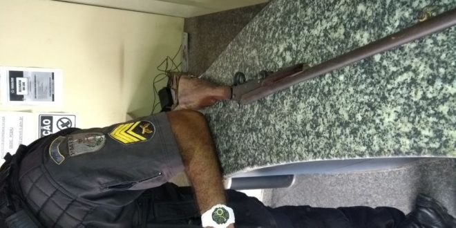 Na tarde deste domingo (03), um homem foi preso por posse ilegal de arma de fogo, no bairro Pimentel Marques, Bom Jesus do Itabapoana. Após receberem denúncia de que o envolvido de 46 anos, que não teve a identidade revelada, estava guardando o artefato suspostamente pertencente a traficantes locais, os PMs seguiram para a Rua Cirillo Ferreira Borges, onde após buscas no interior do imóvel, encontraram sobre o sofá da casa, a espingarda calibre 36. Após depoimento e autuação em flagrante, ele permaneceu à disposição das autoridades, aguardando transferência para a Casa de Custódia de Itaperuna.