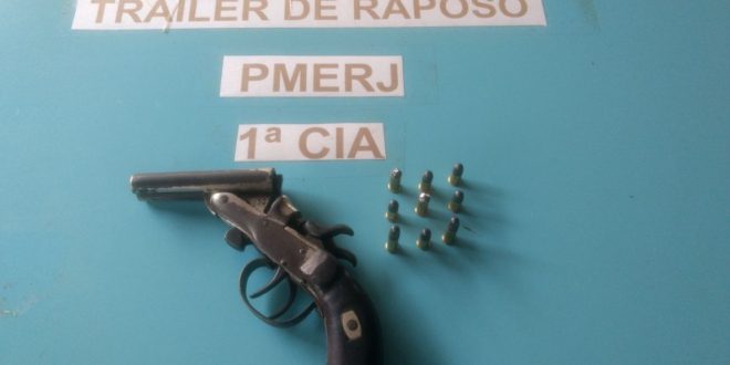 No final da manhã desta quarta-feira (04), um caminhoneiro foi preso por porte ilegal de arma de fogo, na BR 356 na zona rural de Itaperuna. Militares do 29º BPM lotados no DPO da Operação Divisa no Trevo de acesso à RJ 214 (Trevo de Raposo), durante operação de rotina, abordaram a carreta Scannia conduzida por C.E.P., de 37 anos, que de início se mostrou bastante nervoso durante a ação, o que levantou suspeitas dos agentes, que após buscas pelo interior do veículo, localizaram a garrucha Rossi calibre 22 com duas munições intactas (foto). Detido e conduzido até a 143ª Delegacia foi autuado, mas pagou fiança no valor de R$ 400,00, razão pela qual responderá ao processo em liberdade.