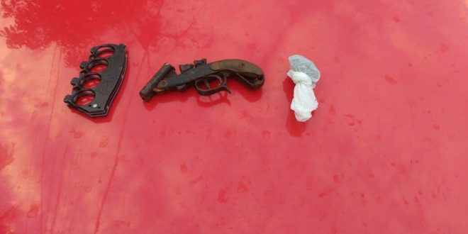 No final da tarde desta quinta-feira (05), um rapaz foi preso na periferia de Itaperuna, após militares do 29º BPM terem apreendido no interior de sua residência, uma garrucha calibre 22, um soco inglês, além de pequena quantidade de maconha. Os agentes verificavam denúncia anônima e seguiram para a Rua Sebastião Cota, no Jardim Surubi, onde com autorização da mãe de Marcos Vinícius da Silva Ramos, de 18 anos, realizaram buscas no imóvel, encontrando a arma sob o telhado e os demais materiais, no quarto do envolvido. Conduzido até a 143ª Delegacia, acabou autuado em flagrante e como não quitou a fiança arbitrada pelo delegado Márcio Caldas, seguiu para a Casa de Custódia.