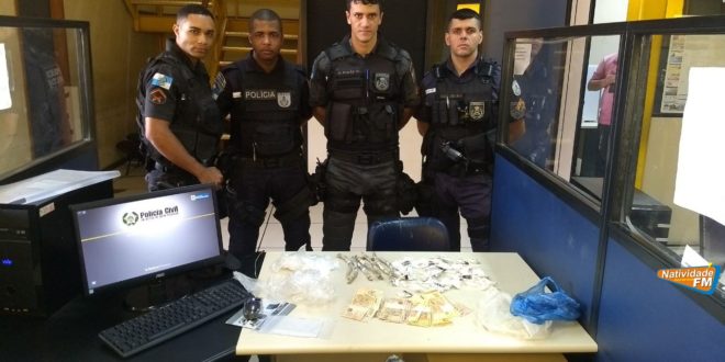 Na manhã desta quinta-feira (26), militantes do Patrulhamento Tático Móvel (PATAMO) do 29º BPM prenderam um homem sob a acusação de tráfico de drogas, no Morro da Faca, no bairro Aeroporto, Itaperuna. Os agentes que averiguavam denúncia repassada ao Disque Denúncia Noroeste (3822-1177), seguiram para a Rua Paulo de Oliveira, onde localizaram enterrados nos fundos de uma residência, 51 pinos de cocaína, sete “ripas” de maconha hidropônica (considerada mais forte), além de R$ 530 em dinheiro e material para endolação.
