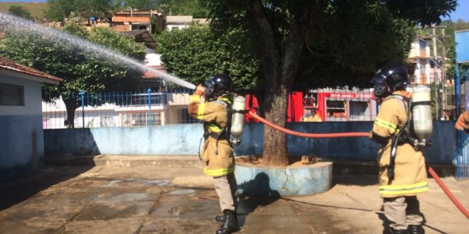 O Destacamento de Bombeiros Militar de Natividade realizou na manhã desta terça-feira (14), simulado operacional na Escola Municipal Dantas Brandão, no bairro Liberdade, onde foi apresentada situação de princípio de incêndio na cozinha da unidade. Buscando o maior realismo possível, os militares foram acionados através do telefone de emergência 193 pela própria diretora da escola e em poucos minutos, chegaram com as sirenes ligadas, chamando a atenção e despertando a curiosidade da vizinhança.