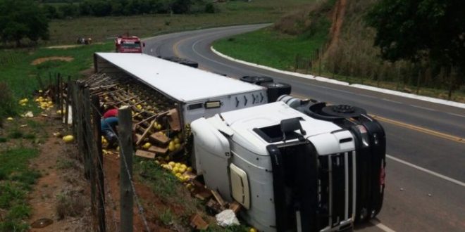 Uma carga com quase dez mil melões e avaliada em mais de R$ 35 mil, foi saqueada após acidente neste último domingo (26), na BR 356, na zona rural de Itaperuna. De acordo com informações de testemunhas, o condutor da carreta Scannia com placa de Pescaria Brava/SC, perdeu o controle da direção na altura do quilômetro 64, no local conhecido como “Curva do Homero” e tombou às margens da rodovia.