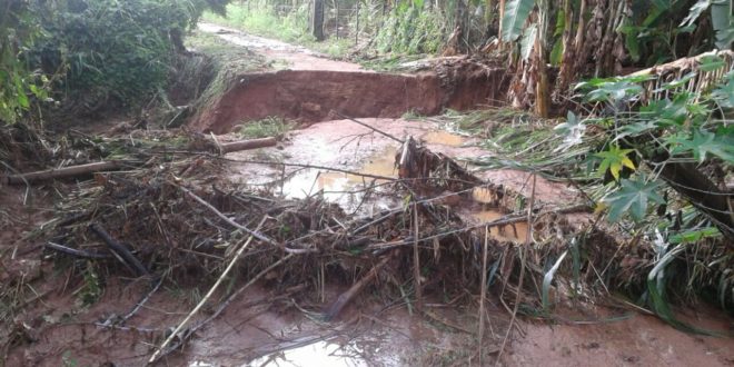 A forte chuva que caiu no final da tarde desta terça-feira (28) voltou a gerar transtornos e alguns prejuízos em Natividade, onde algumas ruas e casas foram alagadas, ficando tomadas de barro. Na antiga estrada vicinal que ligava a cidade à Itaperuna, próximo do Parque Lajinha, a enxurrada destruiu uma ponte, que é sequencia da Rua Vereador Cláudio Garcia Melo (beira rio). O local é muito usado por praticantes de caminhada, ciclismo, além de moradores da área rural.
