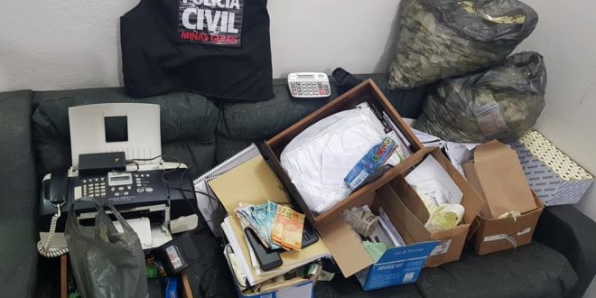 Dois suspeitos foram detidos na manhã desta quarta-feira (27), após cumprimento de cinco mandados de busca e apreensão em residências e estabelecimentos comerciais na cidade mineira de Tombos (distante cerca de 25 quilômetros de Natividade). Equipes da 38ª DP/ Tombos, 36ª DP/ Carangola e da 4ª Delegacia Regional de Polícia Civil de Muriaé, percorreram os pontos encontrando no bar de um rapaz de 27 anos, diversas cadernetas, blocos de anotações e com numerações, máquinas de emissão de jogos, dentre outros matérias usados na prática do jogo do bicho, bem como R$ 931,20 em dinheiro.
