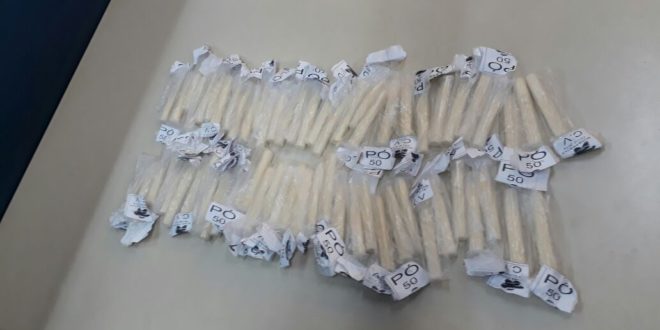 Cerca de 170 gramas de cocaína, já prontos para a comercialização foram apreendidos na tarde deste sábado (06), enterrados no interior de um terreno baldio, que fica às margens da Rua Paulo de Oliveira, no Morro da Faca, no bairro Aeroporto, Itaperuna. De acordo com denúncia recebida pelo 29º BPM, o material distribuído entre 64 invólucros, vendidos a R$ R$ 50 cada (foto), pertenceria a um elemento já identificado, porém não localizado pelos agentes, que apresentaram a droga na 143ª Delegacia, que registrou.