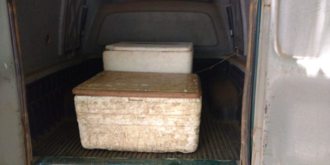 Cerca de 23 quilos de pescado irregular, foram apreendidos na manhã deste sábado (06), após ação de fiscalização deflagrada pela Polícia Ambiental, na feira livre, no bairro Cidade Nova, Itaperuna. Agentes lotados na 3ª UPAm do Parque Desengano, averiguavam denúncia anônima, quando flagraram dois homens, que apresentaram carteiras vencidas de pescador, vendendo os peixes no local.