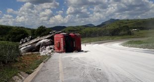 No final da manhã desta quarta-feira (17), um motorista de 37 anos, ficou levemente ferido após a carreta que dirigia, ter tombado na BR 356, no trecho que liga os municípios de Itaperuna e Italva. O veículo estava carregado de cal, quando no local conhecido como Curva do Homero, local de incontáveis acidentes, perdeu controle da direção. Parte da carga …