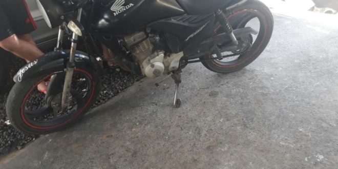 Policiais militares do 36º BPM recuperaram nesta quarta-feira (31), a moto Honda CG Fan 125, de cor preta, placa KNW 5586 (foto), que havia sido furtada no último dia 09 de janeiro, no bairro Niterói, Itaperuna (leia abaixo). O veículo estava abandonado ás margens de uma estrada vicinal, na região do distrito de Monte Alegre, zona rural de Santo Antônio de Pádua. O registro seguiu para a 136ª Delegacia e proprietário, já informado.