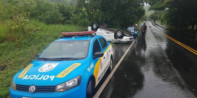 Na tarde deste domingo (04), um veículo capotou na altura do quilômetro 91 da RJ 186, no trecho próximo dos limites entre os municípios de Itaperuna e Bom Jesus do Itabapoana. De acordo com patrulheiros do Posto 18 do BPRV, um rapaz de 22 anos trafegava com a família, quando na comunidade do Córrego Seco, perdeu o controle da caminhonete Ford Ranger de cor branca com placa de São José do Calçado (ES), que dirigia. Apesar do susto e danos no utilitário, os ocupantes sofreram apenas leves escoriações. Chovia no momento do acidente.