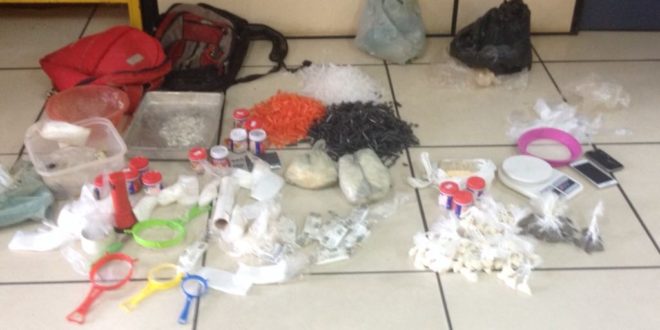 Militares do 29º BPM seguiram para o bairro Frigorífico, onde após buscas, encontraram no interior da residência de Rafael, balança de precisão, material para endolação, um tablete de cocaína, outros 120 sacolés da mesma droga, já prontos para a venda, 26 buchas de maconha, além de 16 de haxixe.