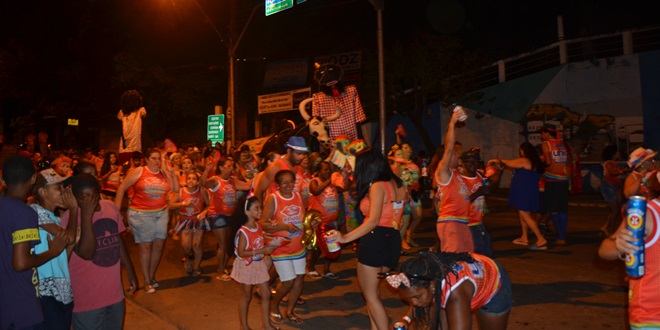 Na noite desta segunda-feira (12), o bloco do Boi Barrão arrastou centenas de foliões desde a concentração, na quadra de esportes do Colégio Alvorada, desfilando pelas ruas até a Avenida Amaral Peixoto, no Centro.