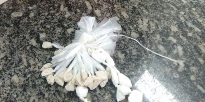 No final da manhã desta terça-feira (20), militares do 36º BPM prenderam a dona de casa Leda Maria Gomes Marinho, de 37 anos, sob a acusação de tráfico de drogas. Os agentes seguiram até a residência da mulher, no bairro Dezessete, Santo Antônio de Pádua, com o intuito de verificar denúncia anônima e após buscas pelo interior do quintal desta, localizaram enterrados 24 papelotes de cocaína (foto).