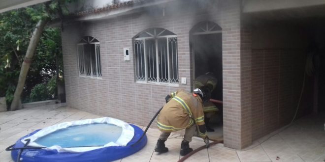 Bombeiros de B.J do Itabapoana combatem incêndio de residência no lado capixaba