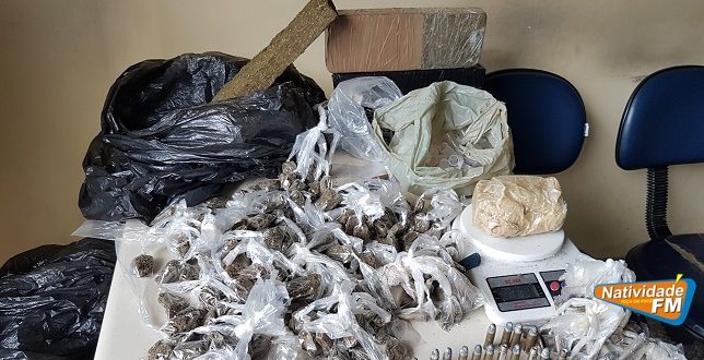 Pelo menos quatro quilos de maconha, distribuídos entre buchas já prontas para a venda, tabletes, 300 gramas de pasta base de cocaína, 56 pinos da mesma droga, farto material para endolação, balança de precisão, celulares, 17 munições de calibre 38, dentre outros, foram apreendidos neste sábado (17), após incursão de militares do 36º BPM no local conhecido como “Sombreiro” em Miracema.