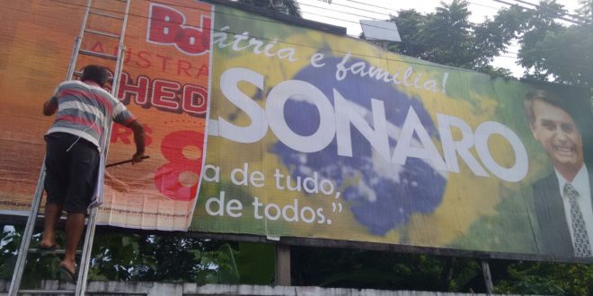 A Justiça Eleitoral de Itaperuna determinou na tarde desta terça-feira (20), a remoção no prazo máximo de 24 horas do outdoor, instalado no dia anterior por apoiadores do deputado federal e pré-candidato a presidência da república Jair Bolsonaro. A “inauguração” da placa, que estava na Avenida Presidente Dutra, área movimentada da cidade, teve direito a fogos de artifício e fotos, postadas pelas redes sociais pelos admiradores do político. A intimação da 107ª Zona Eleitoral (abaixo), foi remetida à empresa responsável pelo espaço, que já providenciou o cumprimento da ordem e remoção da mensagem na manhã de hoje.