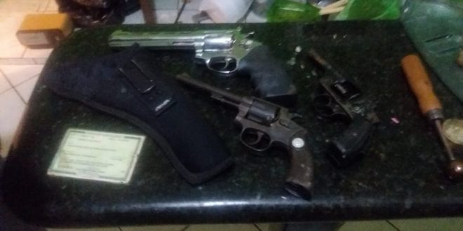 Após a chegada de reforços e negociação, ele se entregou e durante buscas pelo interior do imóvel, foram apreendidos dois revólveres calibre 32 e outro 38, além de nove munições, celulares e R$ 105. Além do homem, sua companheira de 28 anos, também seguiu detida até a 143ª Delegacia, sendo ambos autuados em flagrante, permanecendo à disposição da Polícia Civil aguardando transferência ao sistema prisional.