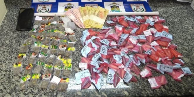 Dois rapazes foram presos no final da noite deste sábado (31), sob a acusação de tráfico de drogas, no bairro Cidade Nova, Santo Antônio de Pádua. Militares do 36º BPM patrulhavam a Rua Júlio de Almeida, quando abordaram João Lucas Lemes dos Santos, de 19 anos e Jo Elyn santos, de 20 e com eles, apreenderam 99 pinos de cocaína e 48 pequenos tabletes de maconha, com inscrições de uma facção criminosa, telefone celular e R$ 170. Levada até o plantão de área da 137ª Delegacia, a dupla prestou depoimento ao delegado Gésner César Bruno, que os autuou em flagrante e determinou a transferência de ambos para Campos dos Goytacazes para audiência de custódia.