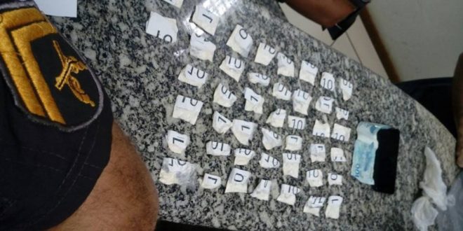 No início da madrugada deste sábado (21), um elemento que não teve a identidade revelada, foi preso por tráfico de drogas no bairro Cehab, Miracema. Militares do 36º BPM realizavam patrulhamento, quando avistaram o suspeito, que ainda tentou se desfazer dos 44 papelotes de cocaína que levava consigo, além de telefone celular e R$ 100 (foto). Levado até o plantão de área da 135ª Delegacia de Itaocara, acabou autuado em flagrante devendo ser apresentado nas próximas horas em audiência de custódia.