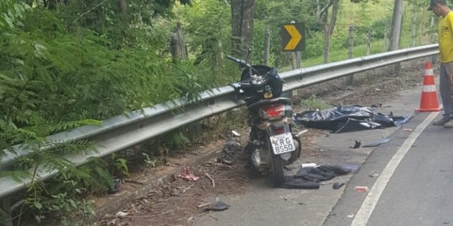 Uma mulher morreu e um homem ficou gravemente ferido após se envolverem em colisão no final da manhã desta terça-feira (24), na RJ 116 entre Aperibé e o distrito de Baltazar, Santo Antônio de Pádua. O casal seguia em uma moto Honda PCX 150, com placa de Palma (MG), quando no local conhecido como “Curva do Jacaré” se chocou contra a lateral posterior esquerda do Jeep Renegade, no qual ninguém se machucou com gravidade.