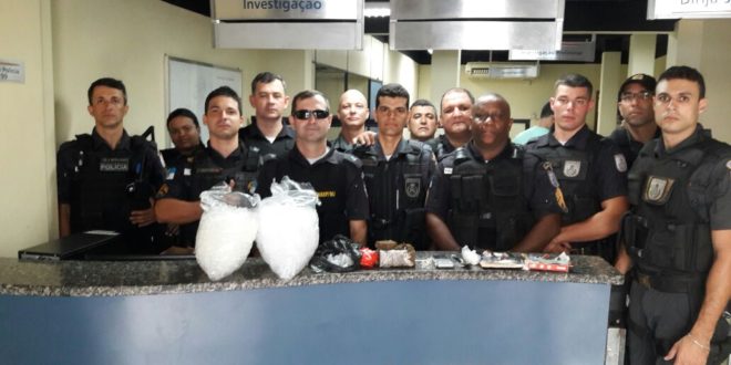 Cerca de meio quilo de drogas foi apreendido na tarde desta quinta-feira (17), durante operação da Polícia Militar no bairro Pimentel Marques, Bom Jesus do Itabapoana. Equipes da 2ª Companhia do 29º BPM verificavam denúncia anônima se deslocaram até a Rua Francisco Nunes, onde abordaram Alex da Silva, de 23 anos, que ao perceber a ação, ainda tentou fugir, mas contido acompanhou os agentes durante buscas em sua residência, onde foram encontrados espalhados pelo interior do imóvel e quintal, grande quantidade de material para endolação, balança de precisão, pinos vazios, oito pedras de crack, além de 425 gramas de maconha, que ele admitiu que venderia por R$ 20 a bucha. Levando até a 144ª Delegacia, acabou autuado em flagrante, devendo ser transferido para Campos dos Goytacazes para audiência de custódia.