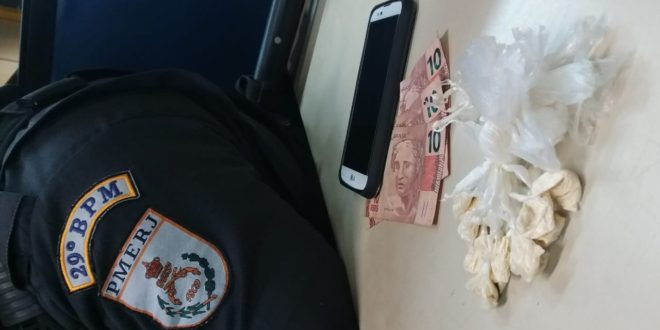 Um adolescente de 17 anos foi flagrando traficando drogas no final da tarde desta quarta-feira (12), na área alta central de Itaperuna. Militares do 29º BPM que apuravam denúncia anônima, quando teriam avistado o infrator próximo do campo de futebol, na Rua Orlando Raelli, mantendo contato com um suposto usuário de entorpecentes e após abordagem, encontraram próximo de onde ele estava, 12 sacolés de cocaína, além de telefone celular e R$ 30, fruto da venda das drogas. Levado até a 143ª Delegacia acabou autuado, permanecendo detido para posterior apresentação ao Ministério Público.