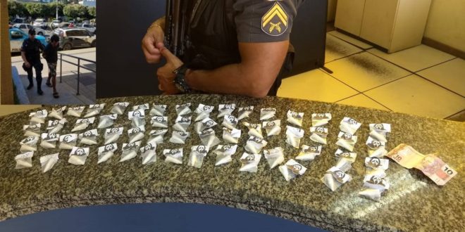 Militares que verificavam denúncia de tráfico de drogas no local, passaram a monitorar o envolvido, identificado até o momento apenas como “Totinho”, de 47 anos, (detalhe na foto), desde a Rua Tenente José Pilar, de onde teria sido visto vendendo entorpecentes à usuários. Abordado instantes depois, os agentes encontraram em seu poder, os 59 invólucros da droga, além de R$ 10.