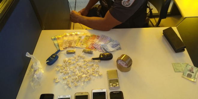 Quatro rapazes, entre os quais um menor, foram detidos na tarde deste sábado (16), durante ação de combate ao tráfico de drogas, no bairro Jardim Surubi, Itaperuna. Equipes do 29º BPM que apuravam denúncia anônima, seguiram para a Rua Joaquim Martins da Silva, no local conhecido como “Favelinha do Claudão” onde no interior de uma residência, apreenderam 81 papelotes de cocaína, dois tabletes de maconha, cinco celulares, dois radiotransmissores, balança de precisão, farto material para endolação, além de R$ 860 em dinheiro. Os suspeitos, L.S.S., de 23 anos; S. S. O., de 22; V.D.P., de 25, além do adolescente de 16 anos, foram autuados por tráfico na 139ª Delegacia de Porciúncula e liberados.