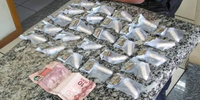 25 pinos de cocaína, além de R$ 10, foram apreendidos no final da manhã deste sábado (23), por militares da 3ª Companhia do 36º BPM, no bairro Cruzeiro, Miracema. A equipe verificava denúncia anônima, quando na Rua Dr. Monteiro, avistou o suspeito, que ao perceber a abordagem, bateu em fuga, deixando o material para trás, não sendo localizado até o fechamento da ocorrência, registrada na 137ª Delegacia.