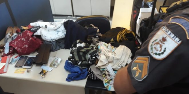 Na tarde desta quarta-feira (27), um casal foi preso instantes depois de ter praticado furtos em pelo menos três lojas, na Rua Joaquim Caetanos Queres, no bairro Guaritá, Itaperuna. O serviço de radiopatrulha já havia sido acionado por uma das vítimas e durante buscas nas bolsas dos suspeitos, os militares localizaram as diversas peças de roupas, óculos, além de calçados, que haviam sido subtraídos. Levados até a 143ª Delegacia, Felipe Carmo Neves, de 28 anos e Suelen de Almeida Silva, acabaram autuados em flagrante por furto qualificado, devendo ser apresentados em audiência de custódia. Já o material (foto) foi restituído aos lojistas, que também estiveram na distrital.