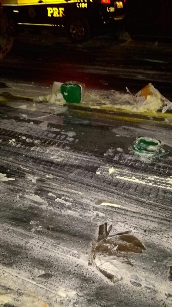 Através de vídeo publicado nas redes sociais a Polícia Rodoviária Federal (PRF), está alertando condutores sobre o incidente que aconteceu na madrugada desta quarta-feira (04), quando um caminhão que transportava margarina, derramou a carga desde a BR 116 no município de Muriaé (MG), se estendendo pelo trecho da BR 356, que corta Itaperuna, inclusive, no seu perímetro urbano. O veículo só foi interceptado próximo de Campos dos Goytacazes, após perseguição policial.