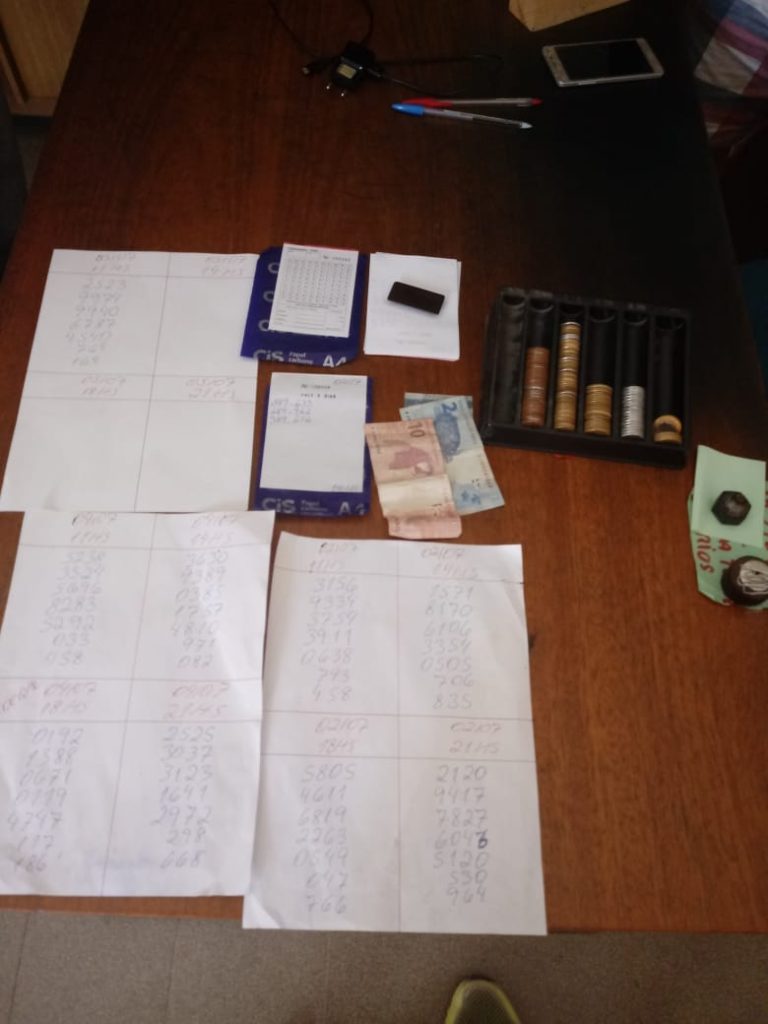 Nos locais, um bar, uma quitanda e duas residências, os agentes recolheram máquinas de impressão de recibos, blocos de anotações, comandas, resultados do jogo, cerca de R$ 150 em dinheiro, além de outros materiais da contravenção.Os envolvidos, J.P.F.G., de 24 anos; E.H.F., de 32; L.F.S., de 44, além de V.H.F., de 49, foram levados até a 143ª Delegacia, autuados e liberados para responder junto ao Juizado Especial Criminal (JECRIM).