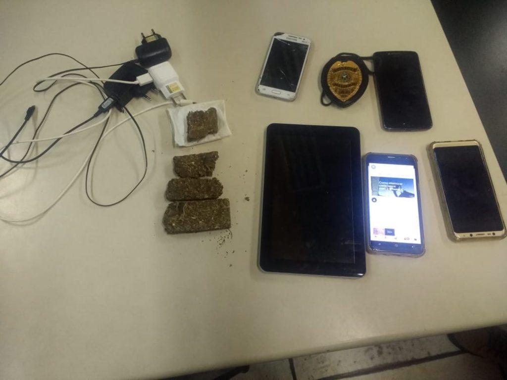 Até o momento, de acordo com a PM, vários suspeitos já haviam sido presos. Foram apreendidos um revólver calibre 38, duas espingardas, farta quantidade de munição, 32 aparelhos celulares, 01 tablet, comprovantes de depósito bancário, cerca de 160 gramas de maconha, certa quantidade de cocaína, duas balanças de precisão, grande quantidade de material para endolação de drogas e aproximadamente R$ 9 mil em espécie (veja fotos abaixo).