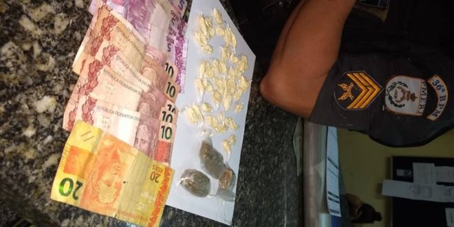 Três pessoas entre as quais um adolescente foram detidos sob a acusação de tráfico e associação ao tráfico de drogas, após ação de militares do 36º BPM, no bairro Palmeiras, em Aperibé. Os agentes que verificavam denúncia anônima, realizaram buscas no interior da residência dos envolvidos, na Rua Ernesto de Souza Cordeiro, no interior da qual, localizaram 40 sacolés de cocaína, três pequenos tabletes de maconha e R$ 90. Diante dos fatos, foram conduzidos até a 136ª Delegacia de Pádua, o adolescente de 17 anos, encontrado em bairro próximo e autuado por crime análogo, permanecendo apreendido, além de Vanuza dos Santos Marmello, de 21 anos e Pablo Lacorte, de 24, estes últimos, transferidos ao sistema prisional.