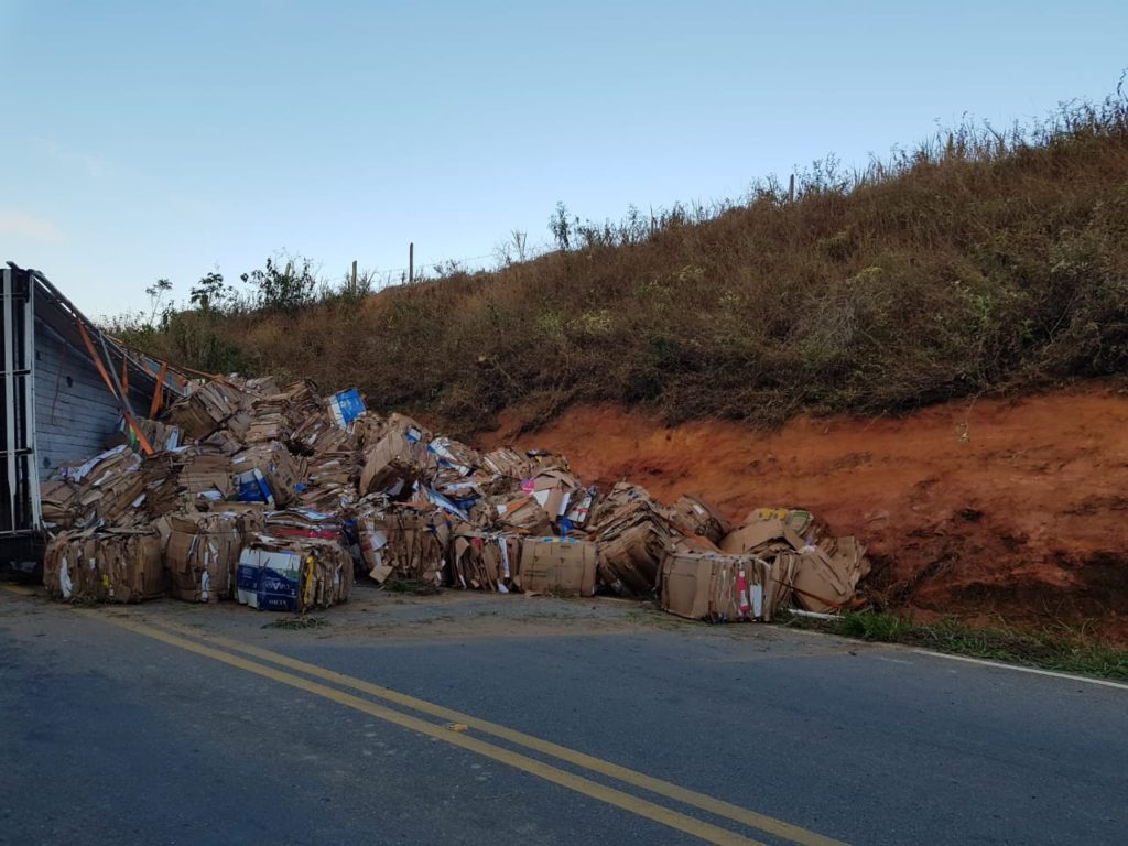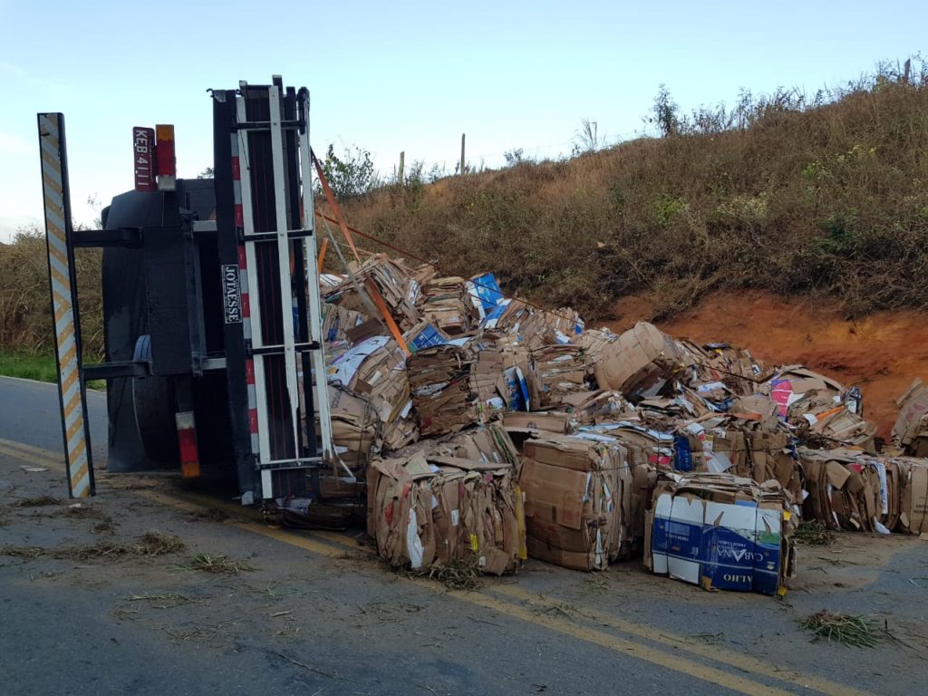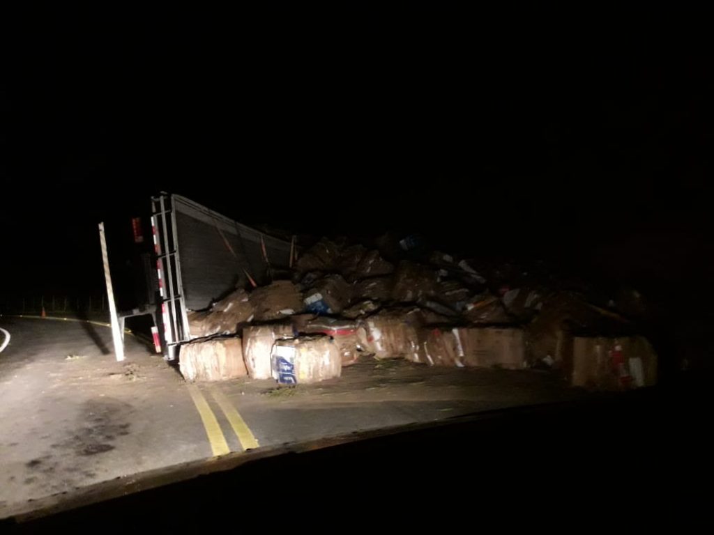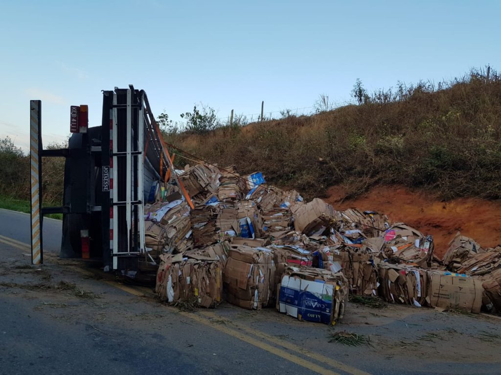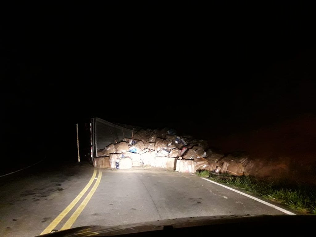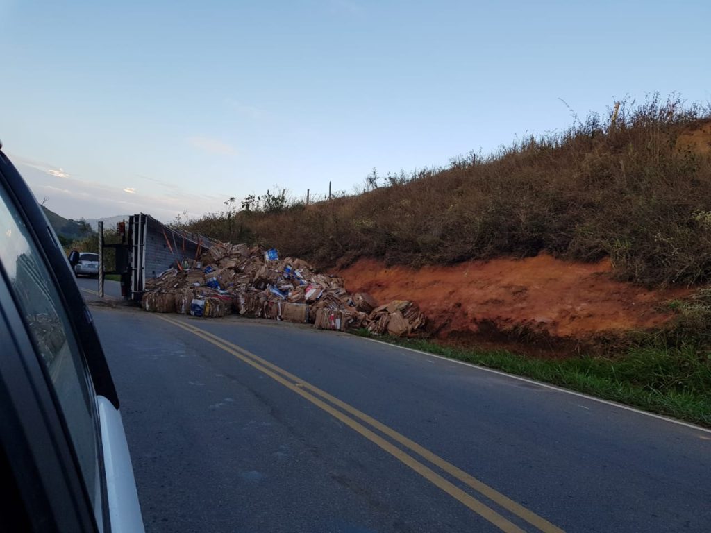 No final da noite desta terça-feira (24), um caminhão de cor branca de carroceria de madeira, com placa de Venda Nova do Imigrante (ES), carregada com materiais recicláveis, tombou na RJ 214, no trecho que liga Natividade e Varre-Sai. De acordo com testemunhas, o motorista perdeu o controle da direção ao tentar concluir a conhecida “Curva do Perillo”, próximo dos limites entre os municípios. A princípio, ninguém se feriu com gravidade, mas até a manhã desta quarta-feira (25), o utilitário permanecia atravessado na pista, cujo tráfego fluiu apenas em um dos sentidos.